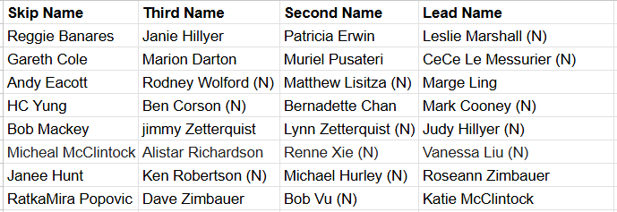 8 Teams, 4 Games, 10 Ends, +2pts per game for each Novice.
