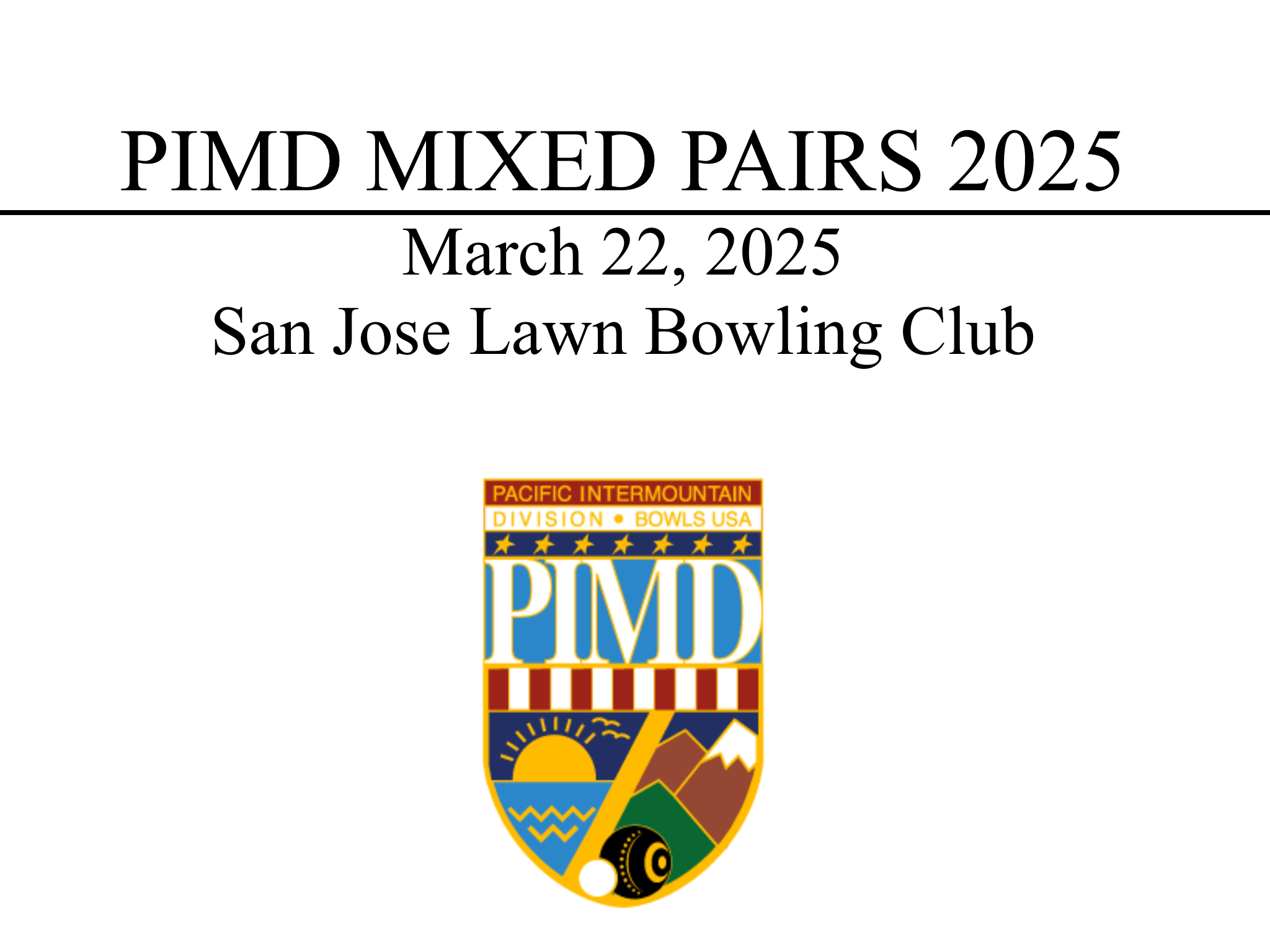 The PIMD Mixed Pairs will be held Saturday March 22, 2025 at San Jose.